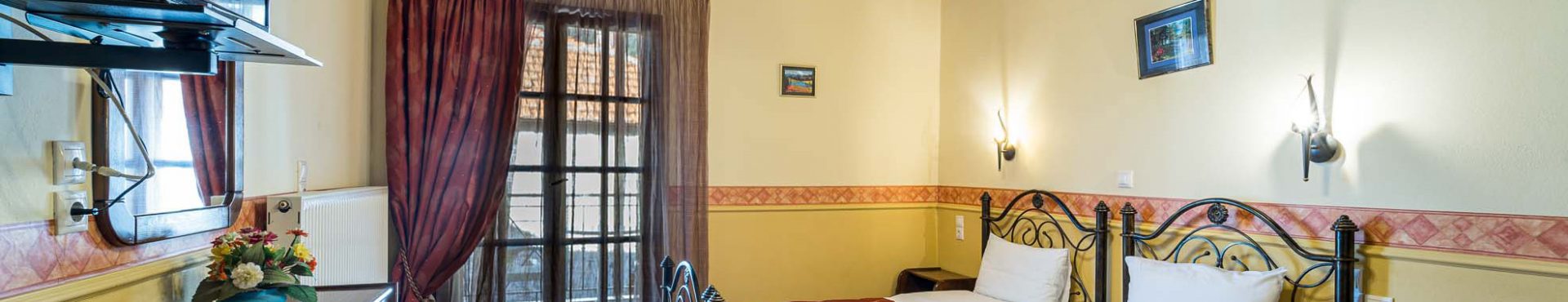 Το δωμάτιο βρίσκεται στον πρώτο όροφο του ξενώνα και αποτελεί την ιδανική επιλογή για ζευγάρια ή για παρέες ταξιδιωτών (2 ενήλικες). Είναι εξοπλισμένο με 2 μονά κρεβάτια και έχει θέα στην αυλή. Απολαύστε από το μπαλκόνι του την ηρεμία του χωριού και τις μοναδικές μυρωδιές του τόπου.